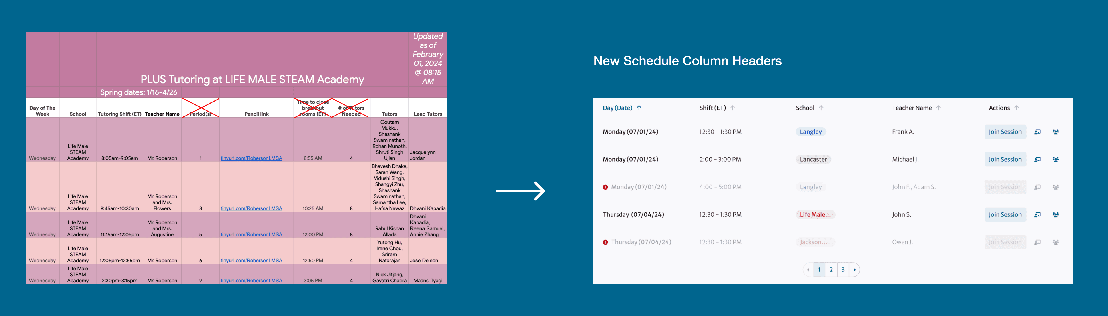 In August 2024, I shipped my design. A month later, the new schedule is live for all tutors and admins to use!